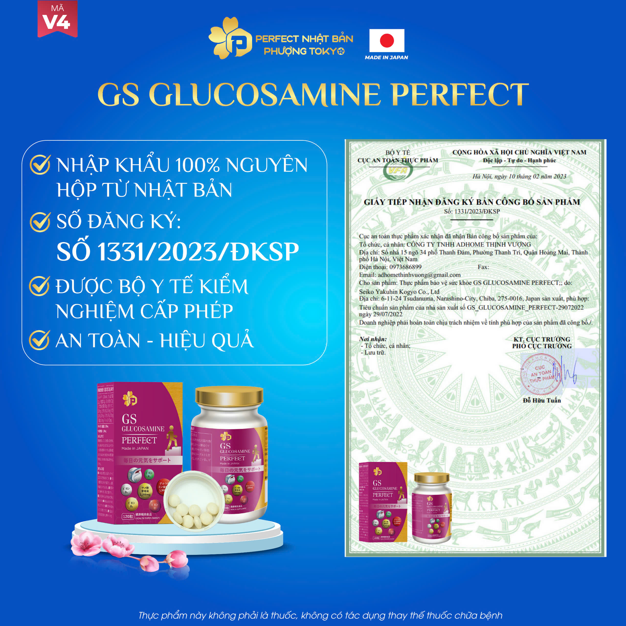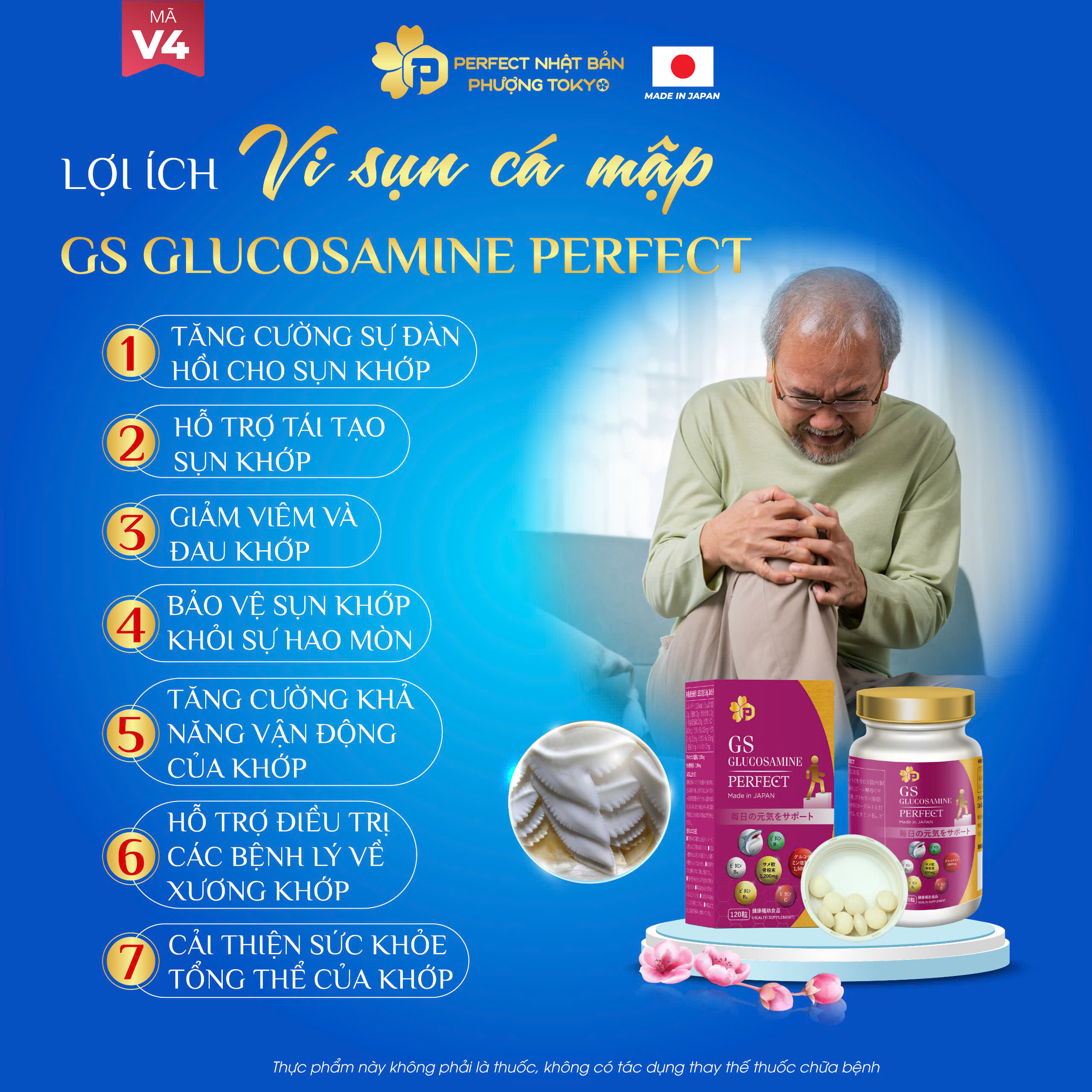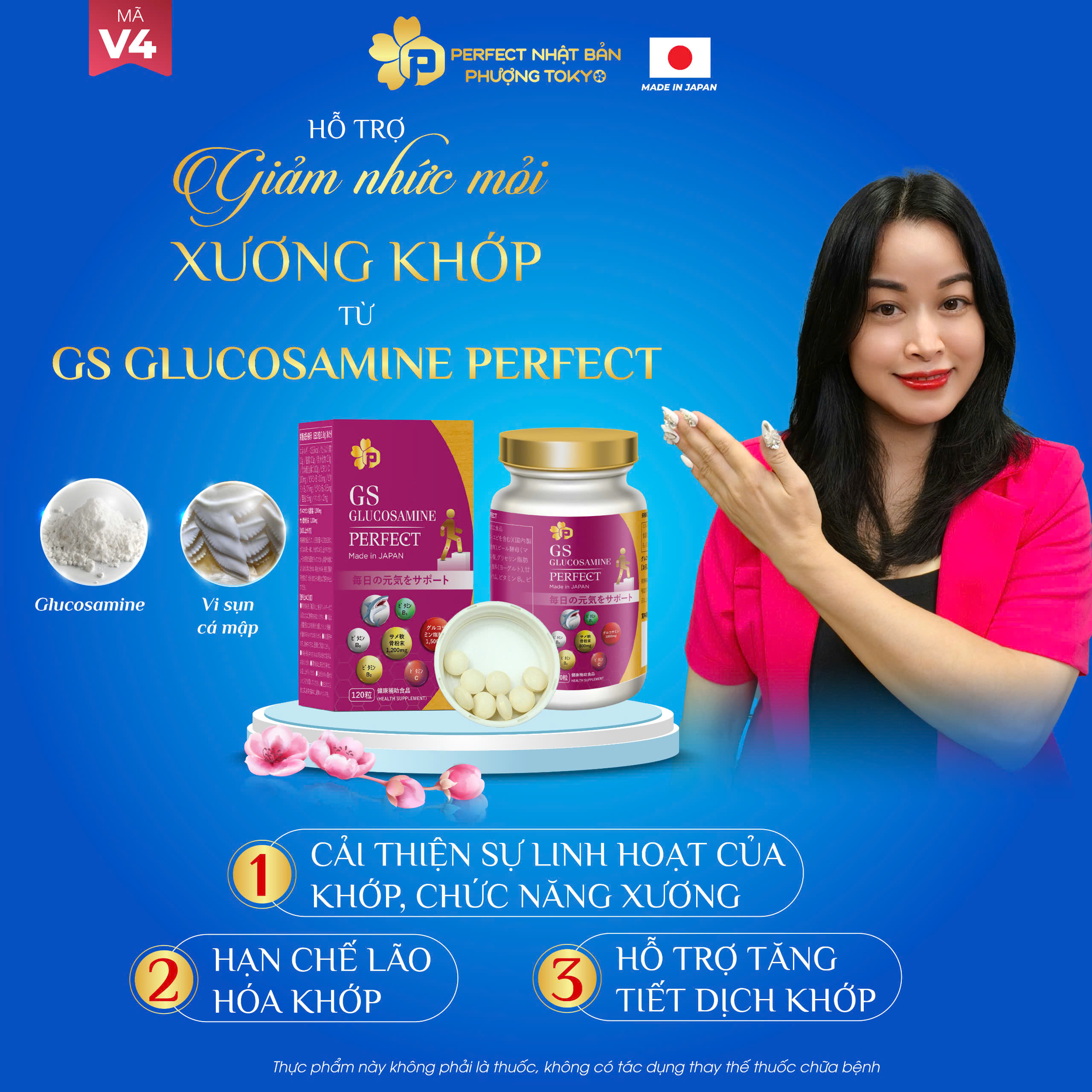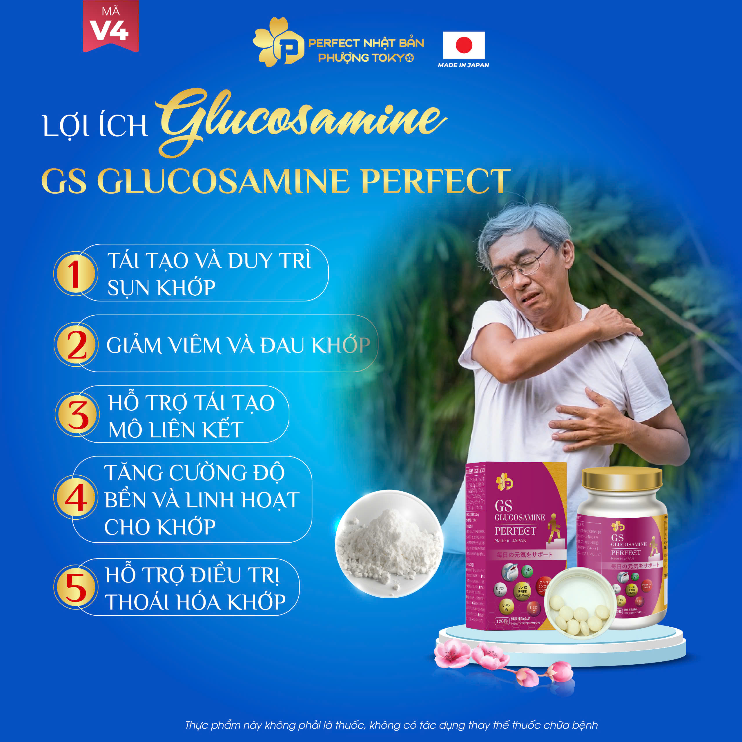 Đau nhức xương khớp và thoái hóa là rào cản lớn nhất của sự vận động. Viên uống xương khớp GS Glucosamine Perfect (Mã V4) nhập khẩu 100% từ Nhật Bản, mang đến công thức đột phá giúp tái tạo sụn khớp và bảo vệ hệ xương khớp bền vững.